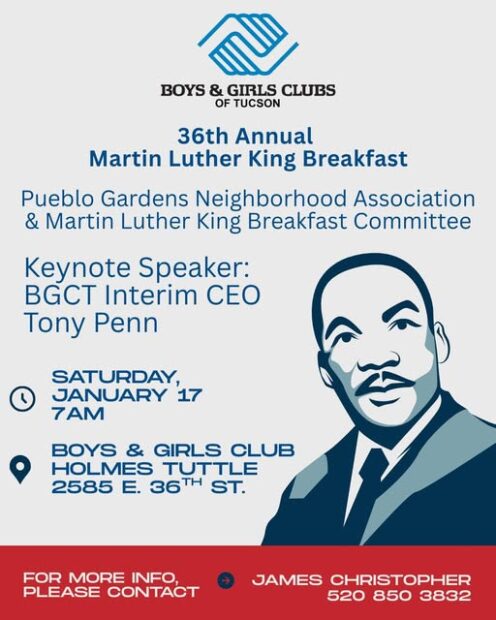 Keynote Speaker: Boys and Girls Club Tucson Interim CEO Tony Penn–Breakfast: 7:30 am–Program: 8:00 am–2585 E. 36th Street, Tucson, AZ