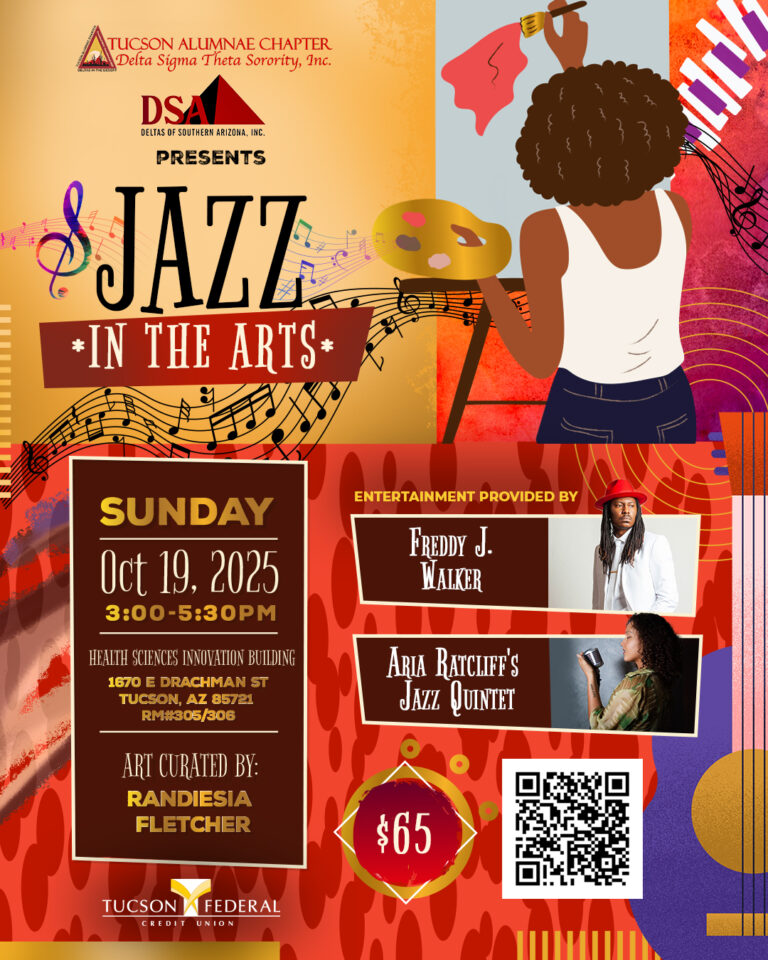 The Tucson Alumnae Chapter of Delta Sigma Theta Sorority, Inc., in collaboration with Deltas of Southern Arizona, Inc., proudly presents Jazz in the Arts, a premier cultural event designed to uplift, inspire, and connect the community through music, art, and fellowship.
