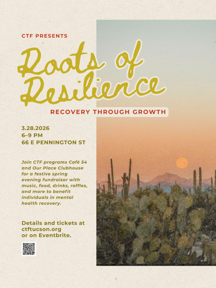 An evening of fun, food, drinks, raffles and art. Music by Cameron Hood of Ryanhood. A chance to support employment and community services provided by Cafe 54, Our Place Clubhouse, and ReThreads Thrift. We provide a safe community, employment skills and support for Tucson residents in recovery from mental illness and substance abuse. 6-9PM March 28th, 2026 at 54 and 66 East Pennington Street