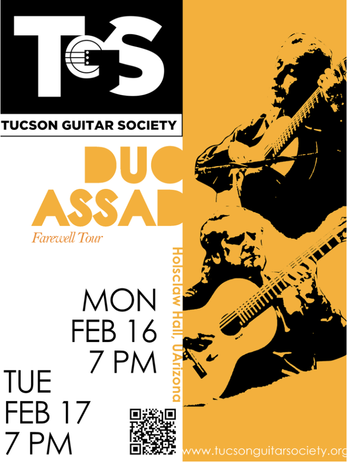 An era is ending! Longtime favorites of Tucson, Sérgio and Odair Assad have played Holsclaw Hall for many years, every fall. It was always a highlight of the guitar season. But they have been appearing together on stages around the world for over 50 years garnering multiple Latin Grammy Awards and Grammy nominations for their outstanding performances, and now the year has come when they will say goodbye to fans everywhere. We are so thankful that they have carved out two days to play in Tucson, back-to-back with friend and colleague David Russell.