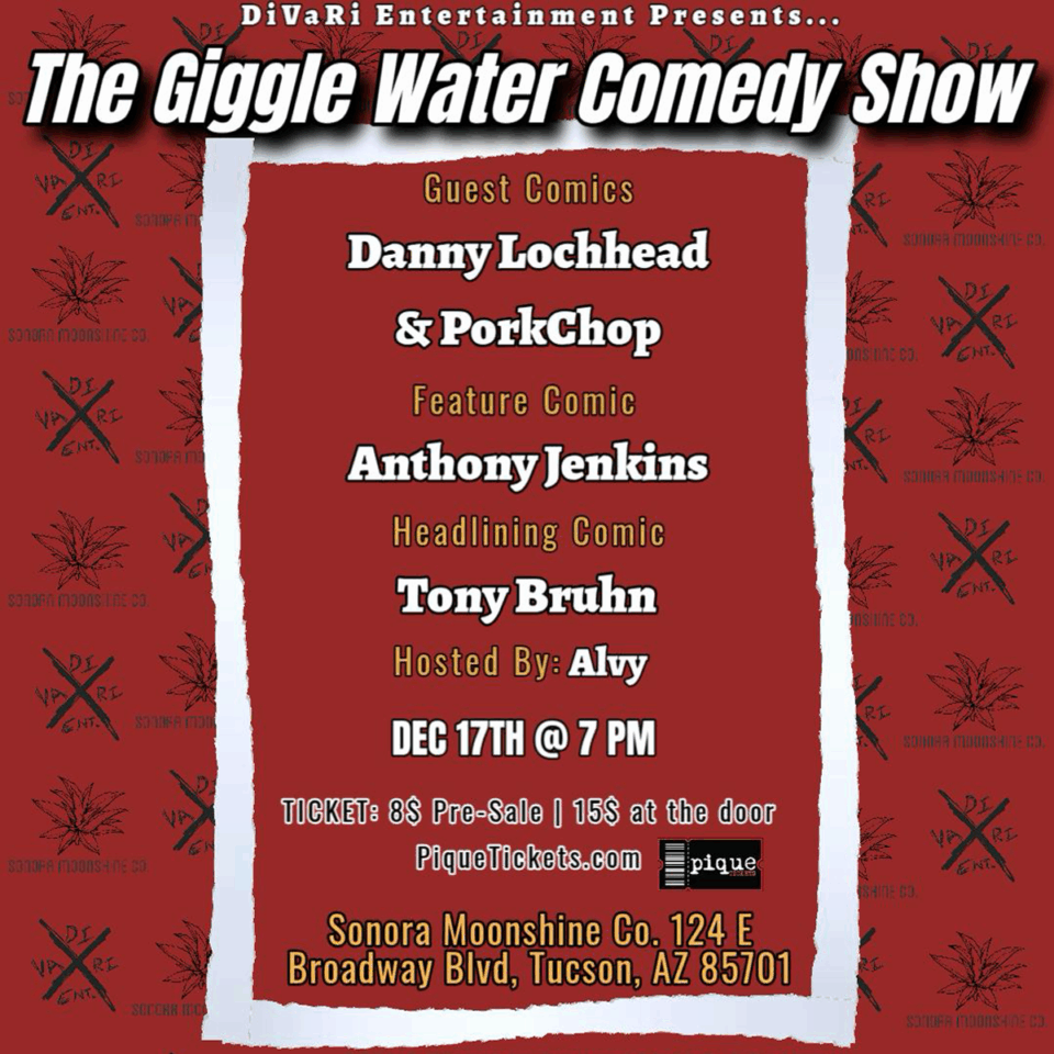 Brand new comedy show at Sonora Moonshine speakeasy! With headliner Tony Bruhn, special guest Danny Lockhead & PorkChop. Hosted by Alvy! Don’t miss this hilarious show at an unforgetable location.