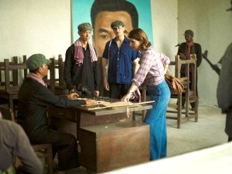 The film creates a steadily mounting sense of dread, largely because the three journalists don’t know any of the facts that we now know about the killing fields. And even though we know the basic outlines, the extent of the evil that slowly becomes apparent has a shocking effect. It’s scary to imagine being in their situation, supposedly privileged to get an interview with Pol Pot, which would be a real scoop, but feeling unavoidably threatened by the menace of what the people in charge are capable of doing. The journalists are confined to a couple of houses with cots while the Khmer Rouge officials keep delaying the promised interview due to supposed scheduling conflicts.