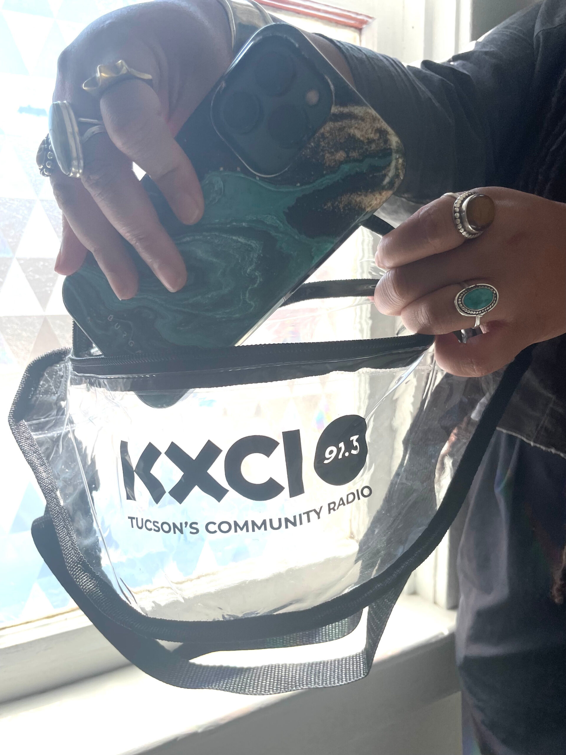 Conveniently compliant concert bag meets venue safety standards while holding your essentials: room for your phone, a thin wallet, keys, and a small cosmetic or medication container.